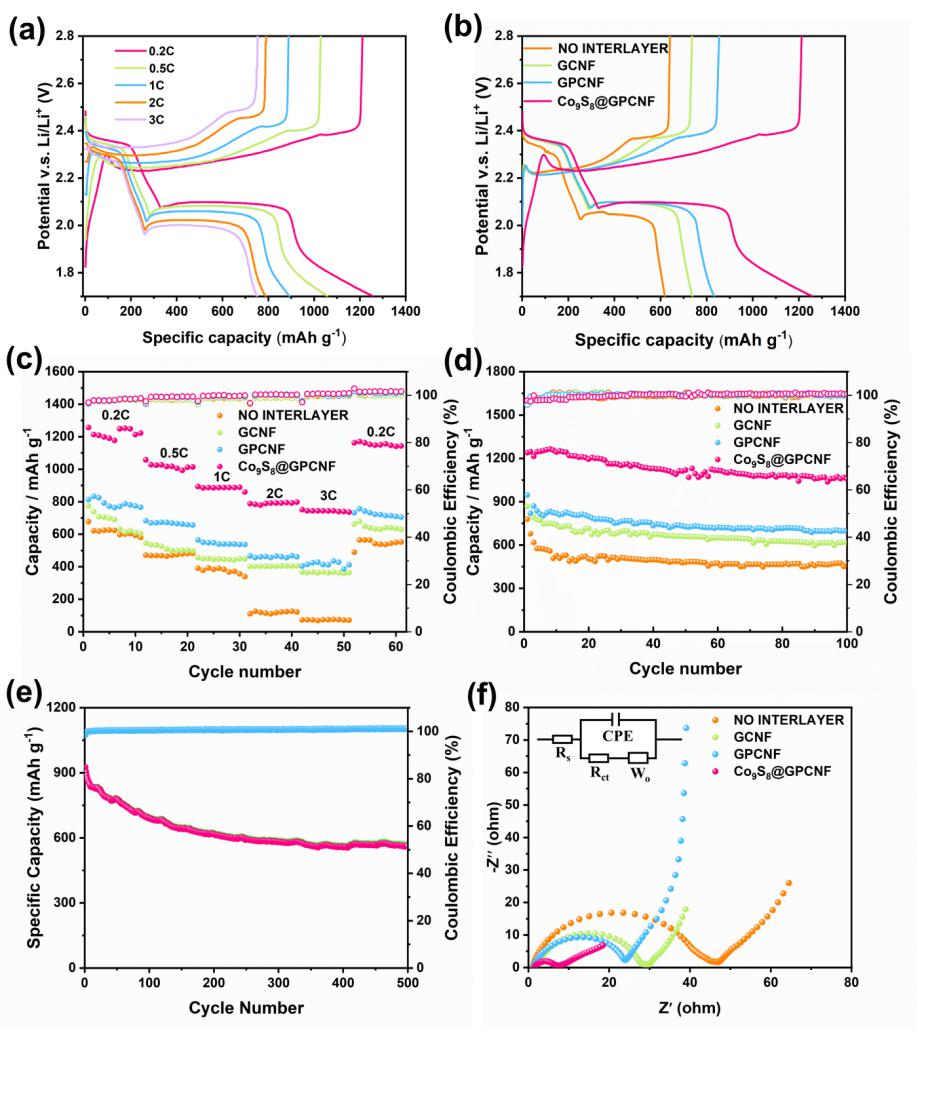图3 碳基核壳纤维隔层助力锂硫电池提升电化学性能