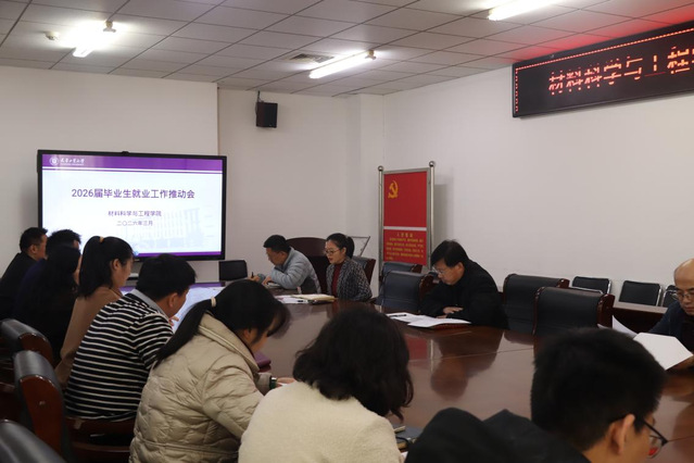 为深入贯彻落实学校关于毕业生就业工作部署,抢抓春季促就业工作关键期,全力推动2026届毕业生高质量充分就业,材料科学与工程学院于3月19日召开了2026届毕业生就业工作推动会。学院领导班子、本科毕业年级班导师、就业相关工作辅导员参加了会议。会议由学院党委副书记曾华英主持。